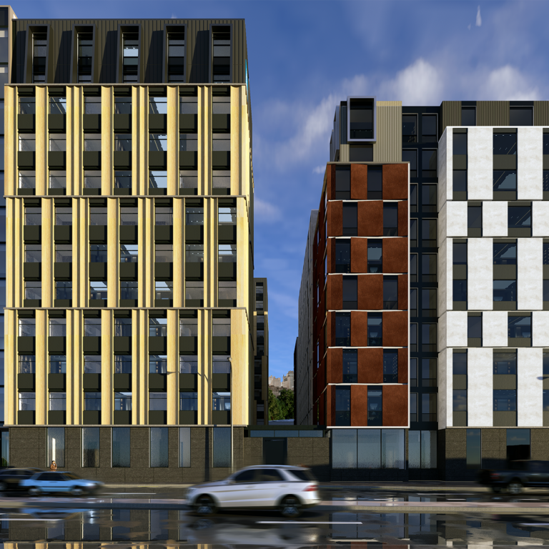 A series of articulated building forms with varied frontages mirror the cadence…